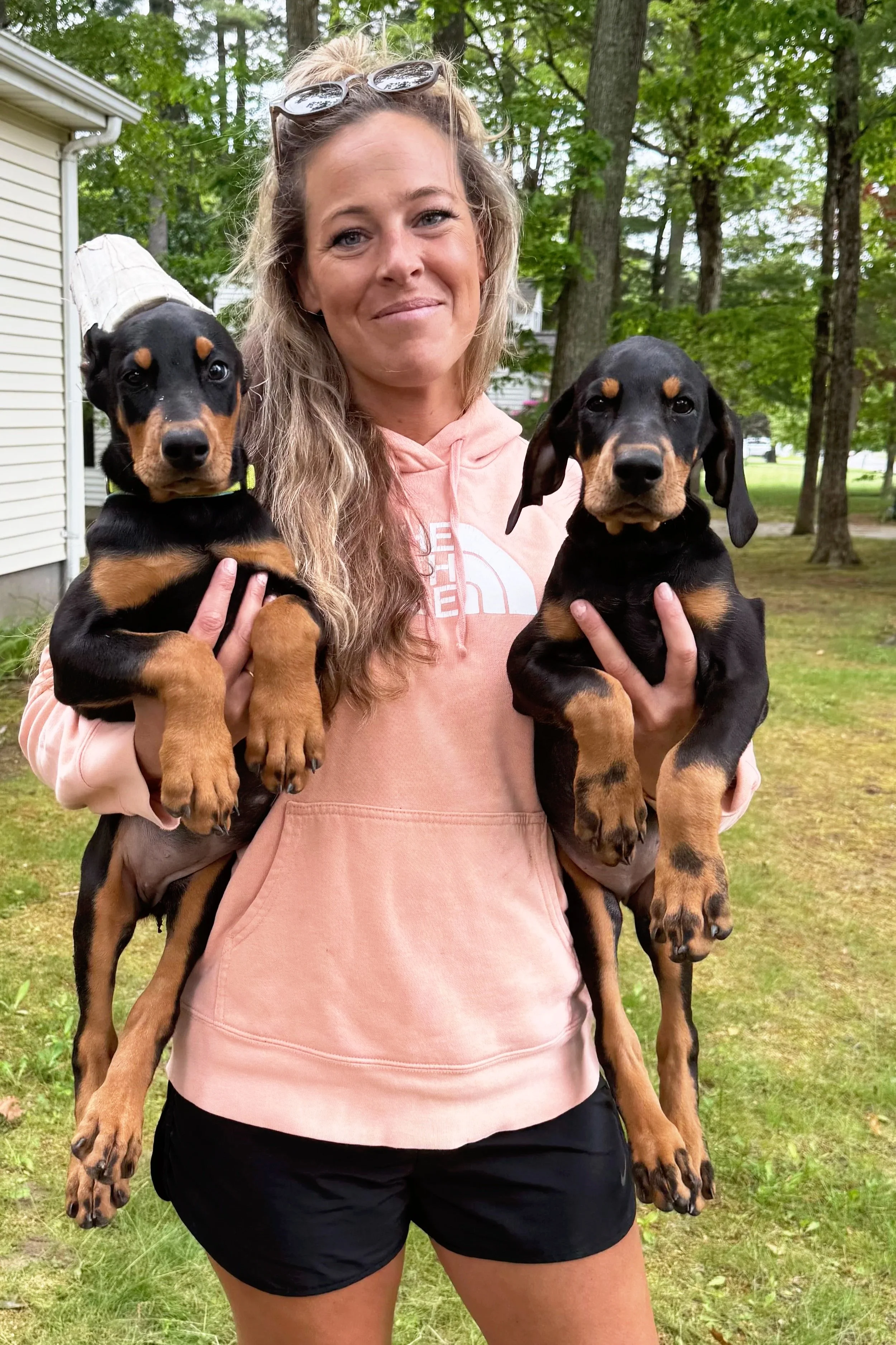 Follow us on Instagram for behind-the-scenes glimpses of our home, our dogs, and their growing puppies. From muddy paws to family snuggles — this is everyday life at Maine Dobermans.